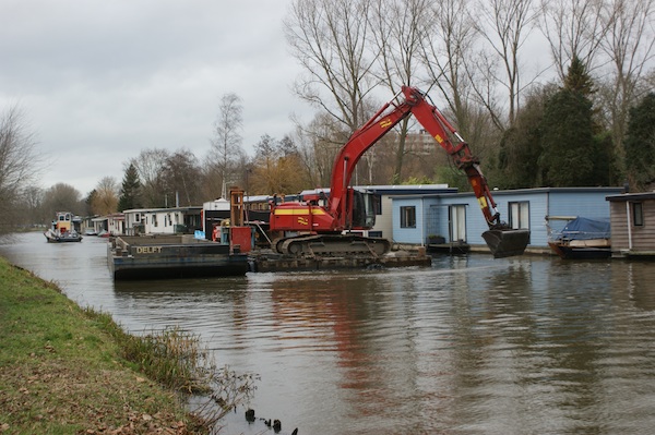 Met iedere schep verdwijnt er een zootje bagger uit de Vecht en zal de rivier uiteindelijk dieper en schoner worden. De baggeraar gaat netjes te werk, maar kan het bewegen van de woonboten niet voorkomen.