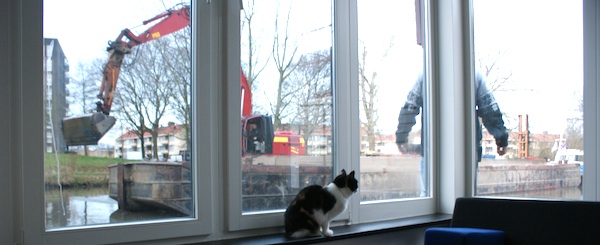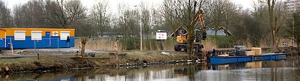 Vandaag werd weer vroeg gewerkt op de locatie waar tijdelijk de woonboten afgemeerd zullen worden. Het leek erop dat het meer dan alleen de laatste loodjes zouden moeten zijn voor het naderende weekend. Toegangsvoorzieningen, hekwerken, parkeerplaatsen, aansluitingen op gas, water, licht, riolering en internet. Alles zal in orde moeten zijn als de eerste woonboten daar tijdelijk een ligplaats krijgen.