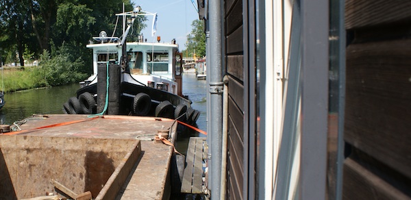 Vorige week werd een aantal woonarken gewisseld. Op 24 juni 2014 gingen de nummers 320 en 324 terug naar hun oorspronkelijke ligplaats. De woonboten van 336 en 338 werden naar de tijdelijke ligplaatslocatie verplaatst. Er werd weer gesleept met twee boten en een beunbak die langszij de te verplaatsen woonboot bevestigd werd.