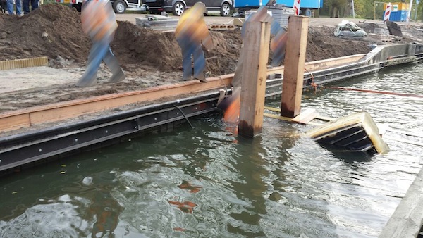 Zo af en toe raakt er iemand te water. Niet leuk natuurlijk voor degene die het overkomt, maar een uitdaging om zo’n moment te kunnen fotograferen. Een “correspondent” is het gelukt, nadat een werkbootje omkiepte, dus kunnen we het niet nalaten die foto te plaatsen. Er is sprake van dat het bootje nu ontslagen wordt.