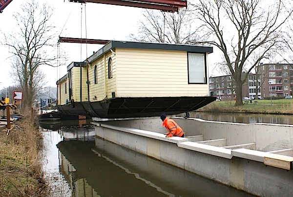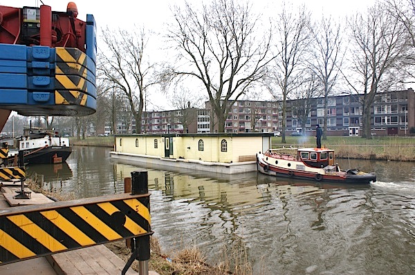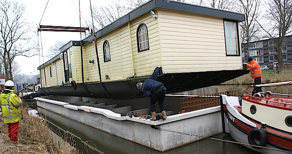 Bij de J.M. de Muinck Keizerbrug waren twee grote kranen van Van der Tol opgesteld. Die hesen de woonark een eindje boven water, waarna een door de Blauwe Wimpel in Diemen nieuw op maat gemaakt betonnen casco eronder gevaren werd. Nadat de ark in de betonbak gezakt was, kon een duwende sleepboot het geheel weer terug varen naar de ligplaats.